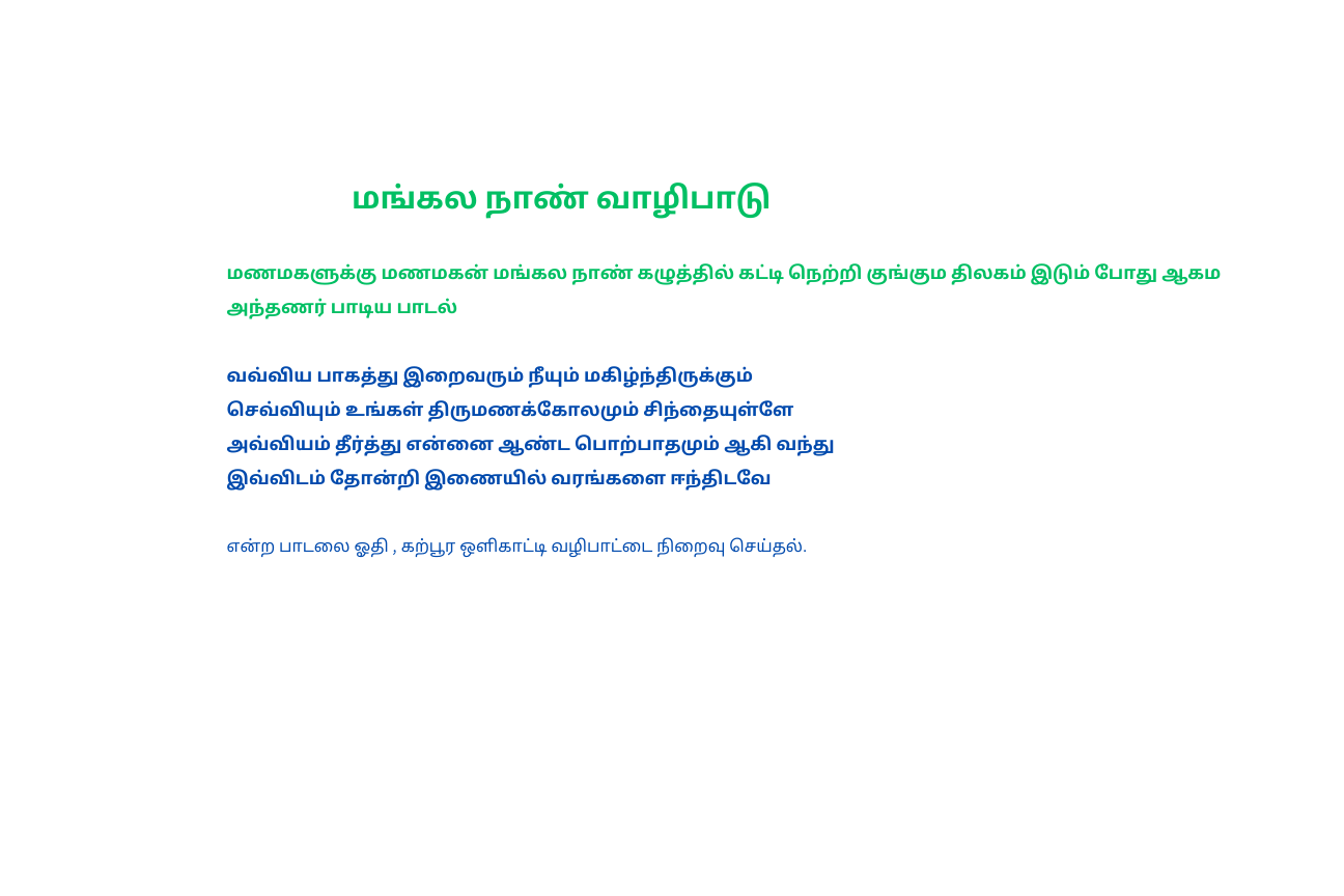 திருமண விழாவில் பாடிய மந்திர பாடல்கள் அருளியவர்வகள்: