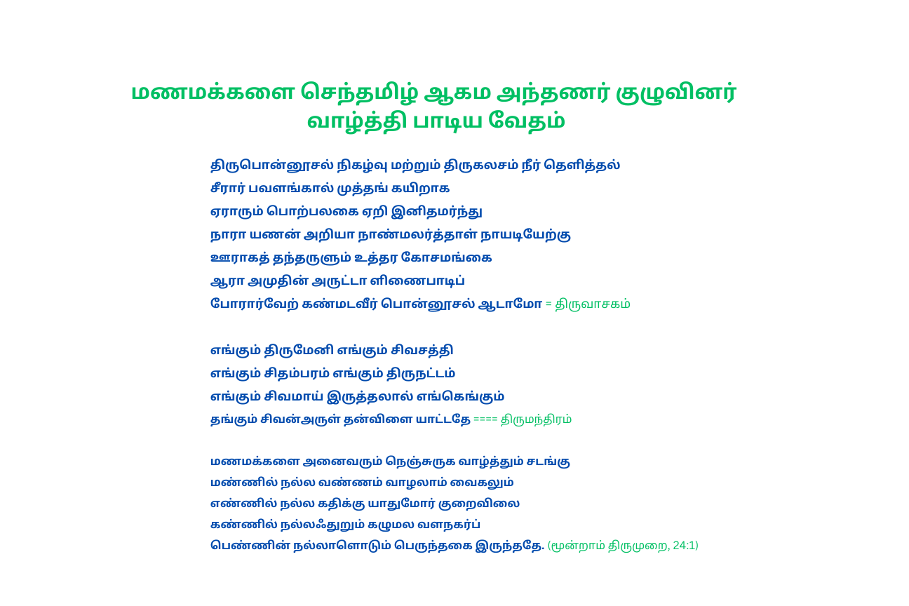 தமிழ் வேதங்களின் முறைபடி திருமண விழா