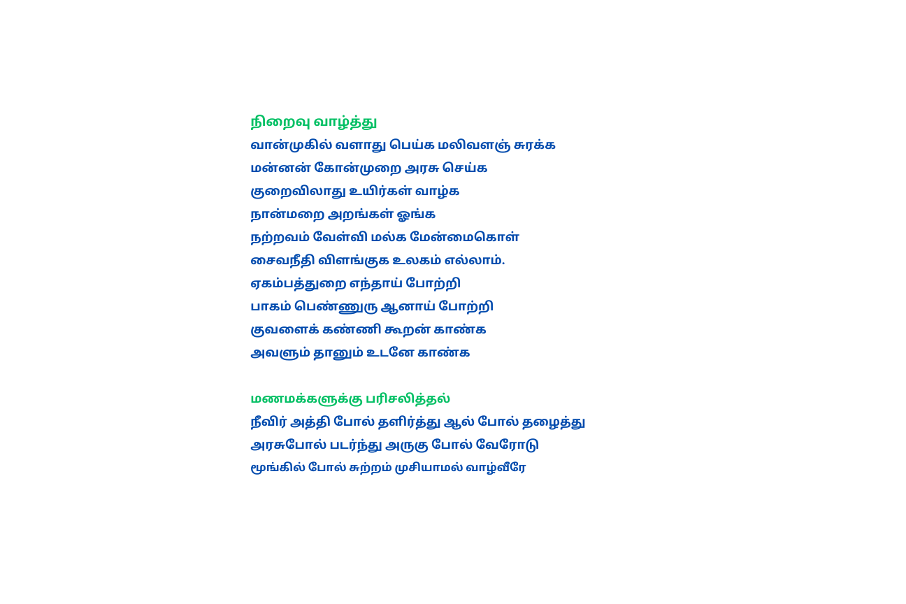 தமிழ் வேதங்களின் முறைபடி திருமண விழா நடத்தியவர்கள்:
