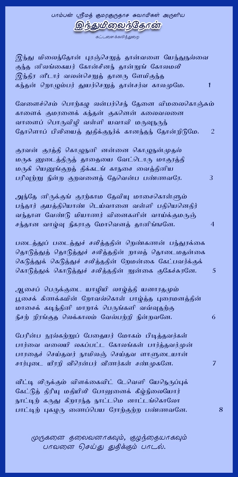 கந்தன் தொழும்பர் துயர் செறுத்தான் சர்வ காலமுமே. 1.