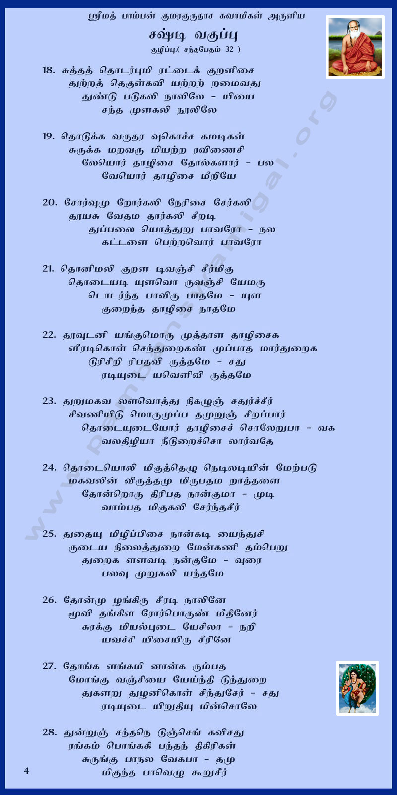 | 1. சண்முக கவசம் | அறுசீர்க்கழிநெடிலடியாசிரிய விருத்தம் | 30 | ||