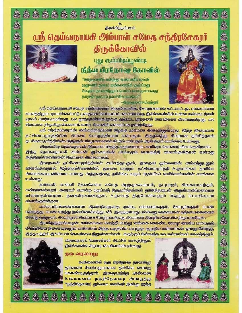 ஸ்ரீ தெய்வ நாயகி அம்பாள் சமேத சந்திரசேகரர் திருக்கோயில் புது கும்மிடிப்பூண்டி பற்றிய சிறு குறிப்பு