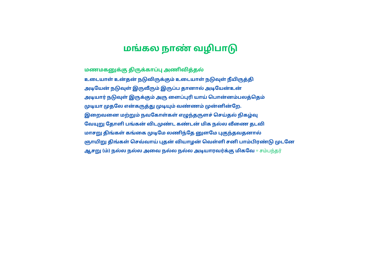 திருமண விழாவில் பாடிய மந்திர பாடல்கள் அருளியவர்வகள்: