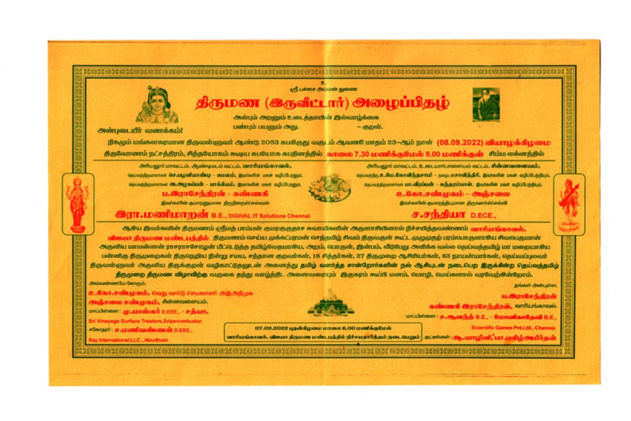 மணநாள்: 08.09.2022 வியாழக்கிழமை